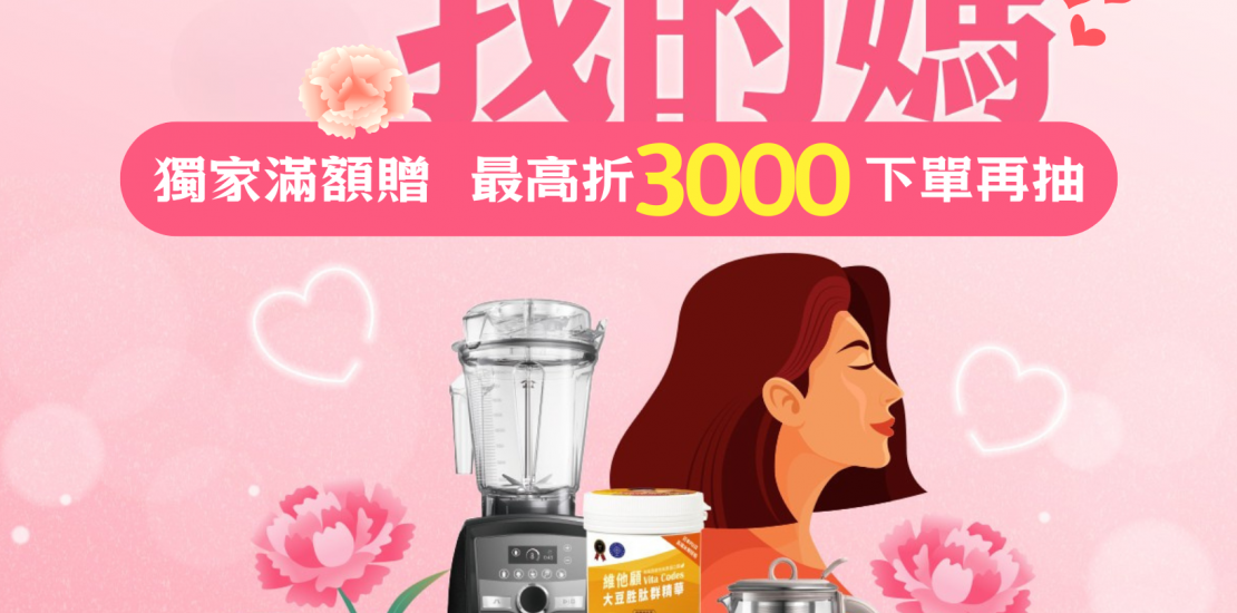 【食尚我的媽】母親節優惠 最高折3000 滿額好禮贈 下單再抽 (4/29~5/12)