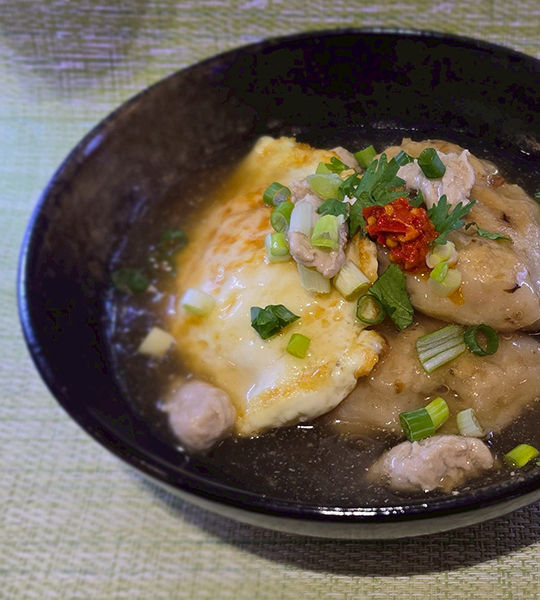 6. 台南口味的肉粿一定要有虱目魚肉羹,弄成小塊小塊的在羹湯裡,還要再煎一顆荷包蛋喲!!
