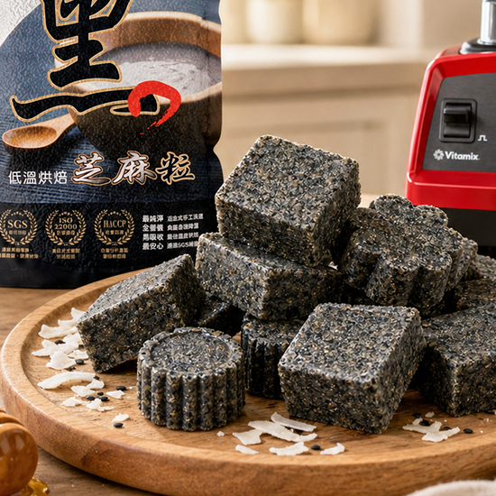 1. 將黑芝麻粒置入2.0L容杯, 蓋緊杯蓋。以轉速#10操作10秒,待調理時間結束,備用。