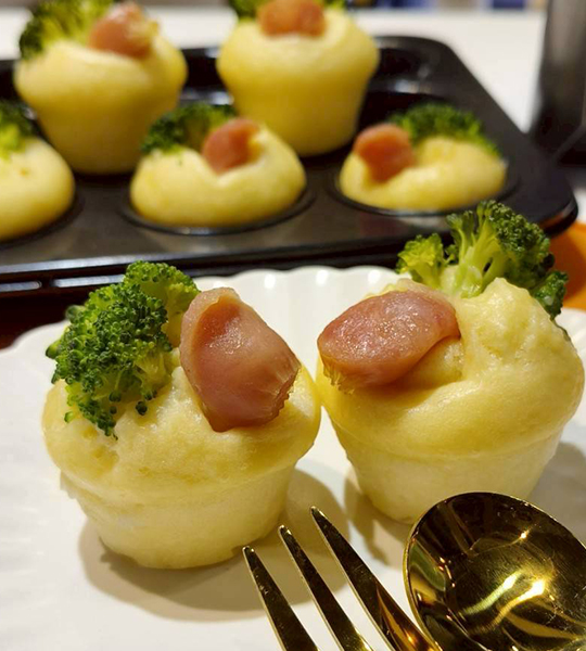 花椰鹹料小麵包高纖低脂,簡單蒸出健康美味 食材 使用機器:BUYDEEM蒸燉鍋、Vitamix調理機 食材: 花椰菜 1/2顆 火腿腸 2條 泡打粉 3g 低筋麵粉 110g 鹽 1g 糖 6g 蛋 1顆 牛奶 60c.c. 橄欖油 少許 做法 花椰菜使用橘寶水清洗乾淨備用。 將花椰菜用熱水川燙後,切成小朵,火腿腸切成0.5cm厚塊狀。 使用調理機將冰糖快速打成細粉,依序加入低筋麵粉、泡打粉、蛋,攪打均勻即可。 將牛奶加入作法 3.的材料中混合,再倒入橄欖油、鹽拌勻,直到無顆粒感。 模具抹上少許橄欖油,將麵糊倒入約八分滿,擺上切好的花椰菜、火腿腸。 食材連同模具置入蒸燉鍋,開啟#蒸模式10分鐘,待程序結束後,即可上桌食用。 營養分析 食材特色 食譜來源 新光西門-楊淑玲 紓壓綠拿鐵 previous 白果干貝竹笙雞湯 next