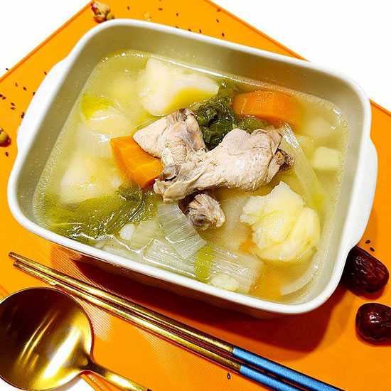 西芹蘿蔔鮮雞湯高纖.清爽.消水腫 喝下滿滿輕盈感!食材 使用機器: 北鼎多功能蒸燉鍋 食材: 雞腿肉 150g 西洋芹 100g 白蘿蔔 1/3條 紅蘿蔔 1/3條 洋蔥 1/2顆 鹽 適量 好水 1000ml 做法 雞肉洗淨,熱水川燙去除血水備用。 洋蔥、紅白蘿蔔去皮切塊狀,西洋芹洗淨後斜刀切小塊。 所有食材一起置入大燉盅中,加入好水,開啟#燉模式40分鐘。 完成後,放入鹽巴調味即可。 營養小知識 食譜出處 新光西門-楊淑玲 金棗薑茶 previous 富貴養生湯圓 next