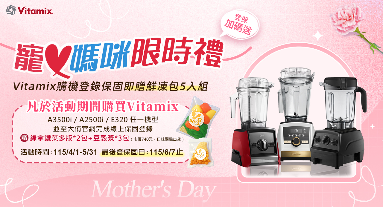 寵❤️媽咪限時禮|Vitamix 購機登錄保固贈 鮮凍包5入組 115.4.1-5.31